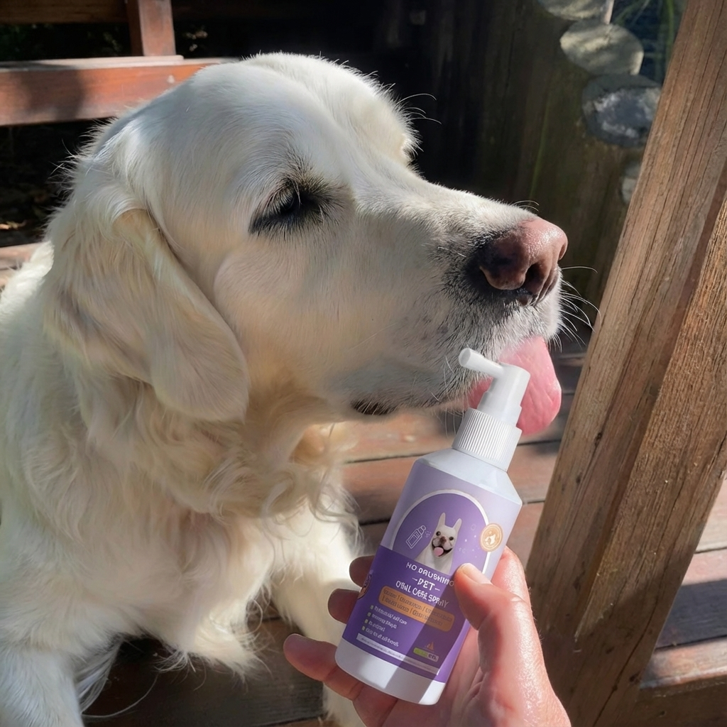 VitalPaws Oral Care Spray™ is a vet-approved formula that works at the enzyme level with your dog's natural saliva to break down years of tartar buildup, eliminate bacteria, and prevent painful periodontal disease—without the fight of brushing or the trauma of anesthesia.